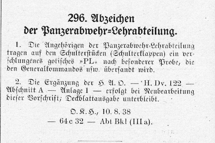 Ein Obergefreiter der Panzerabwehr Lehrabteilung im Waffenrock. Die Abzeichen "PL" auf den Schulterklappen etc. wurden mit Vfg.v.10.8.1938 eingeführt (die Proben zu den Abzeichen wurden erst mit Datum vom 29.9.1938 ausgegeben)