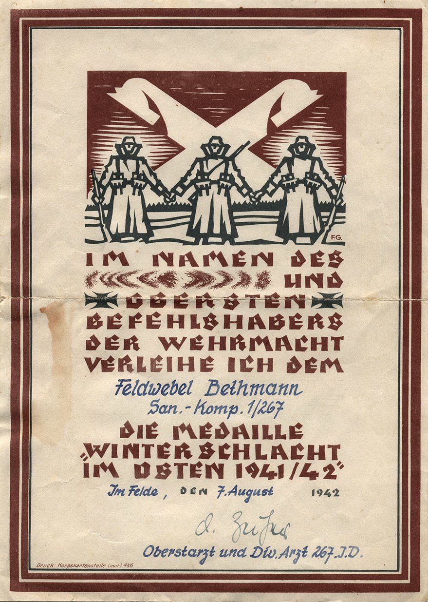 Bei dieser maschinengeschriebenen Variante ist vor allem der rückseitige Verleihungstext interessant.