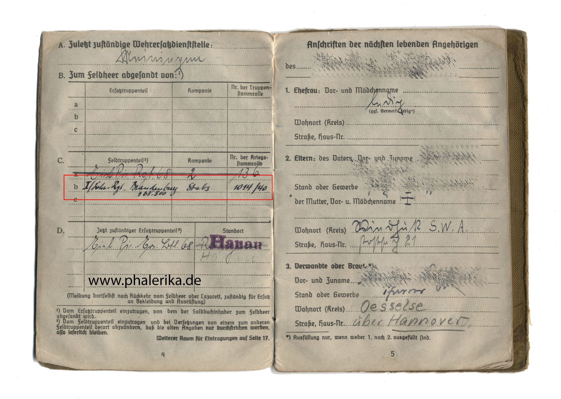 Die nächsten interessanten Infos über Walter findet man auf Seite 23 des Soldbuches. Der Urlaub wurde am 25. Oktober 1940 vom Sonderverband Hollmann, Lehr-Regiment „Brandenburg“ z.b.V. 800 (FP-Nr. 01706) genehmigt.